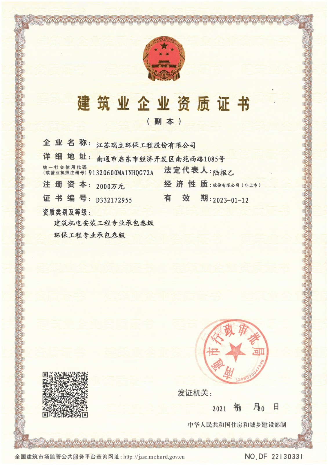 江蘇瑞立環保工程股份有限公司(原江蘇瑞帆環保工程股份有限公司),成立于2017年3月,注冊資金2000萬元,坐落于江蘇省啟東經濟開發區南苑西路1085號,為省高新技術企業、省民營科技企業、省科技型中小企業。公司是專業從事大氣污染治理設備設計、研發、生產、安裝、銷售、服務于一體的新型環保企業。是由江蘇瑞帆環保裝備股份有限公司(瑞帆環保)和自然人共同發起投資成立的股份有限公司,其主營環境污染治理工程、機電設備安裝工程、土壤修復工程施工;制造、銷售大氣污染協同治理系統設備、高爐煤氣干法除塵設備、焦爐煤氣凈化處理設備、大型耐高溫、耐酸袋式除塵設備、工業鍋爐煙氣脫硫脫硝設備、垃圾焚燒處理設備;環境污染治理及監測技術的研發、技術咨詢、技術服務;合同能源管理。公司產品主要用于冶金 、電力 、建材 、化工 、垃圾焚燒等行業的煙氣治理;公司還積極開拓服務領域及海外市場,分別成立了鄆城縣綠維、曹縣蔚藍、南安市瑞立、莆田市瑞立、漳浦縣瑞立、淮安市瑞立、慶陽蔚藍等7家全資子公司承擔福建圣元環保股份有限公司的7家垃圾焚燒發電子公司的污染治理第三方運營服務的業務,公司部...